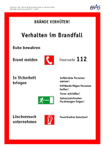 An gut sichtbarer Stelle im Gebäude muss ein Alarmplan / eine Brandschutzordnung Teil A ausgehängt werden. Diesen finden Sie in der EFAS-Broschüre "Mit Feuer und Flamme für den Brandschutz".