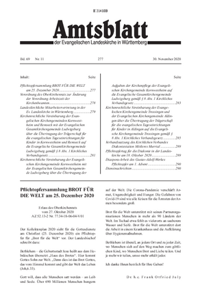 | Pflichtopfersammlung BROT FÜR DIE WELT am 25. Dezember 2020 |