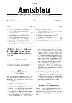 | Kirchliches Gesetz zur Änderung des Württembergischen Pfarrergesetz und des Pfarrbesoldungsgesetzes |