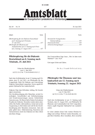 | Pflichtopfertag für die Diakonie Deutschland am 8. Sonntag nach Trinitatis, 25. Juli 2021 | Seite 437 | 11. Mai. 2021 |
