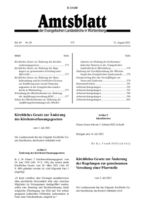 | Kirchliches Gesetz zur Änderung der Haushaltsordnung und des kirchlichen Gesetzes zur Einführung eines neuen Finanzmanagements in der Evangelischen Landeskirche in Württemberg |