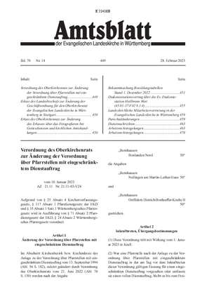| Verordnung des Oberkirchenrats zur Änderung der Verordnung über Pfarrstellen mit ein- geschränktem Dienstauftrag |