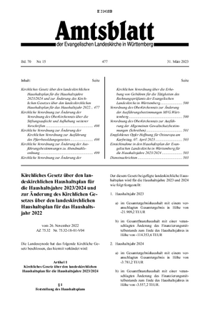 | Kirchliches Gesetz über den landeskirchlichen Haushaltsplan für die Haushaltsjahre 2023/2024 und zur Änderung des Kirchlichen Gesetzes über den landeskirchlichen Haushaltsplan für das Haushaltsjahr 2022 |
