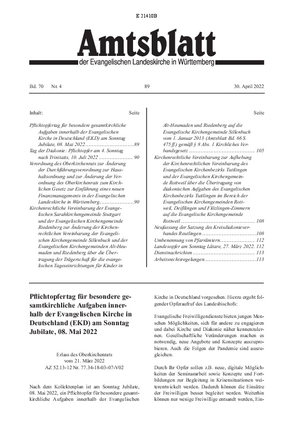 | Pflichtopfertag für besondere gesamtkirchliche Aufgaben innerhalb der Evangelischen Kirche in Deutschland (EKD) am Sonntag Jubilate, 08. Mai 2022 |