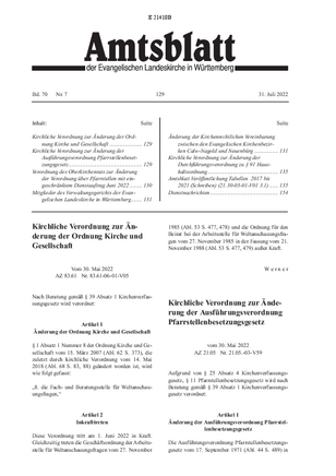 | Verordnung des Oberkirchenrats zur Änderung der Verordnung über Pfarrstellen mit eingeschränktem Dienstauftrag |