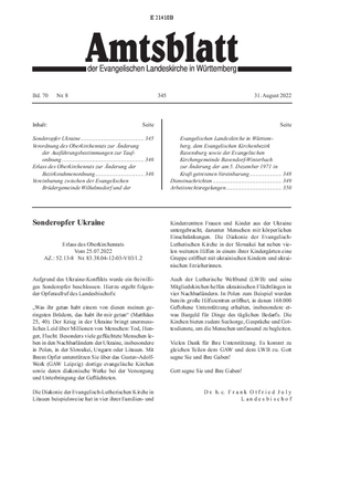 | Verordnung des Oberkirchenrats zur Änderung der Ausführungsbestimmungen zur Taufordnung | Seite 346 | 12. Juli. 2022 |