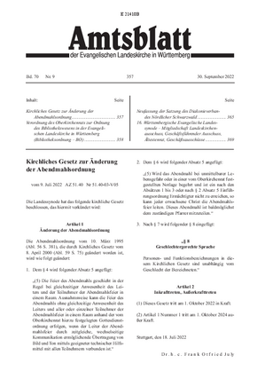 Vom 30. September 2022 (Seite 357 - 372)| Titel | Seite | Erschienen am |